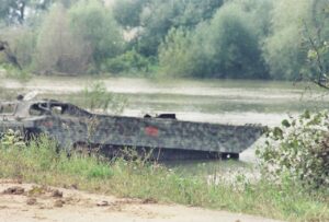 Уништена хрватска амфибија ПТС-М код Тополе ужаса (Доња Градина). Амфибија је онеспособљена противтенковском мином током покушаја деблокаде хрватских војника који су чамцима прешли у Републику Српску.