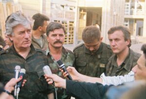 Предсједник Републике Српске Радован Караџић у посјети Козарској Дубици након операције Уна 7. октобра 1995, са командантом 11. дубичке бригаде пуковником Милојом Мисирачом (други слијева) и потпуковником Пантелијом Ћургузом (други сдесна).